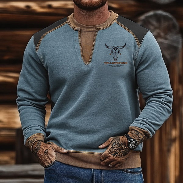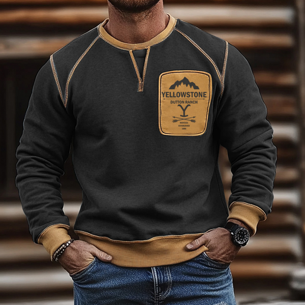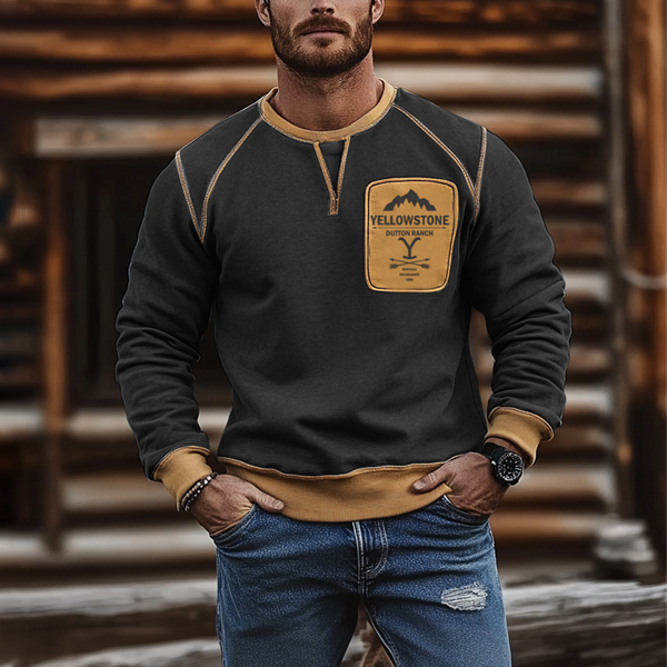 Men's Outdoor Vintage Yellowstone Patch Print Casual Pullover Sweatshirt