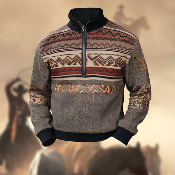 Men's Retro Yellowstone Ethnic Print Half Zip Stand Collar Outdoor Sweatshirts