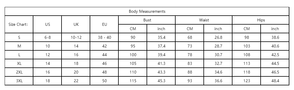 *Depending on your body type and dressing habits, the above sizes are for reference only.