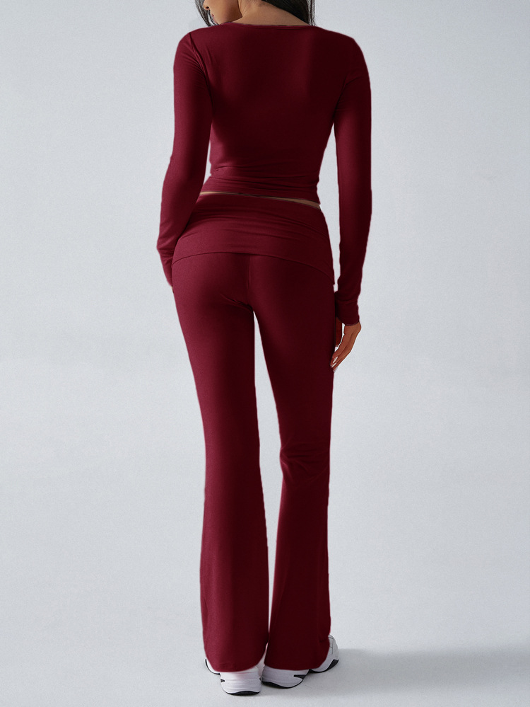 This two-piece set combines a fitted, long-sleeved top with flowing pants that flatter your figure. Ideal for a modern, relaxed look, it's perfect for city trips or just relaxing.